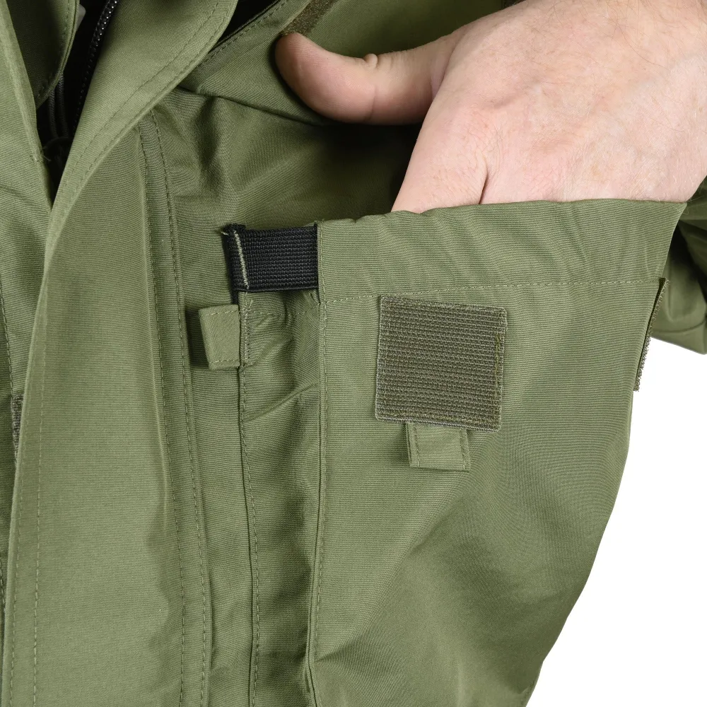 abas duplas para proteção ao zíper e os punhos ajustáveis.